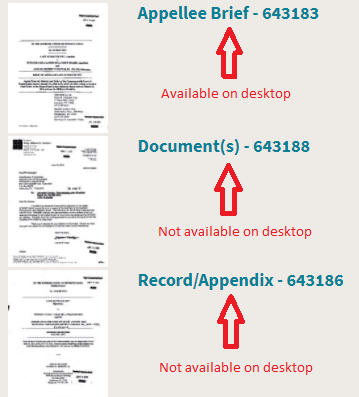 In order to view an item, it must be indexed as a brief. Both the documents in the above example can be viewed on your desktop because they are labelled as Appellant Brief and Appellee Brief. Just select the item to see the digital version.